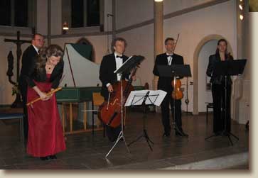 „Nach dem temperamentvollen Zusammenspiel von Flöte und Violine brillierte die Flöte beim Largo (BWV 529) ebenso wie beim Allegro im Zusammen spiel mit Violine, Violoncello und Basso continuo…Nicht zuletzt durch die emotionale Reichweite ihrer Interpretation verliehen die fünf Künstler diesem Werk (Telemann Concerto a-moll) Ausdruckskraft und Glanz. Das Publikum zeigte sich sehr angetan und bedachte die Mitwirkenden mit viel Applaus.“